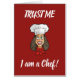 Chef's hoofd met pet, rode neckerchief en aangepaste tekst.