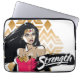 Kijk naar Wonder Woman voor haar logo tribale patroon met de "Sterkte" op een geschilderde penseelstreek.