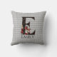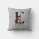 Whimsical Wonderland met de thema's gooi kussens is uitgerust met Alice en de tekenkleur Queen of Hearts met grote letters/initiaal E met een zwarte/gouden/rode kaartsuites die het patroon vult op een grijze harlequin-achtergrond. Pas verder met klantgerichte naamtekst aan