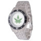 Weed Leaf Vape Stoner Watch heeft één perfect onkruidblad in het midden met een zwarte boomrand. U kunt het aanpassen of personaliseren door uw eigen afbeeldingen, tekst en achtergronden te veranderen of toe te voegen. En vergeet niet te zoeken naar coördinerende items, die je ook kunt aanpassen.