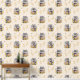 Woodland Animals Baby Wolf Cub Floral Cream Behang