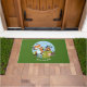 Vergeet niet je voeten te wissen na je vlucht. Een deurmat met een afbeelding van dieren met een landoverschrijdende lange-afstandsrun. Fox passeert moeiteloos de finish, met een vastberaden eekhoorn niet ver achter, en een moe badger over de heuvel achteraan. Met enthousiasme ondersteund door stut, mus, hommel en vlinder. Een uitstekend ontwerp voor ventilatoren van rennen en cartoons. Verander de standaardtekst in uw aangewezen bericht of titel.