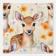 Waterverf boshond dierlijk baby hert met vlekken in een wild bloemenveld op crème achtergrond.