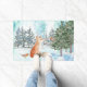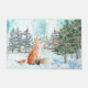 Een schattige vos zit in een sneeuwscène met twee robin vrienden. Geweldig voor kerstversiering, maar kan gedurende de hele winter worden gebruikt.