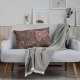 Dit kussen heeft een op het bos geïnspireerd ontwerp met dennen en zachtroze bessen in diepe aardse tinten. Een natuurlijk, feestelijk accent voor in huis.