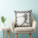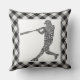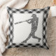Baseball Softball Player Calligram Sierkussen. Zwarte gingham achtergrond. Verkrijgbaar in groottes van 16 x 16 of 20 x 20 inch en in katoen of polyester. Gebruik het menu 'grootte' aan de rechterkant van het scherm om kussens te wijzigen.