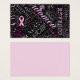 Deel een belangrijke boodschap met dit stijlvolle visitekaartje-ontwerp dat een Breast Cancer Awareness woord cloud-ontwerp bevat. Sommige van de woorden zijn: Hoop, Liefde, Geloof, Geloof, Moed, Bewustzijn, Zuster, Moeder, Dochter, Tante, Grootmoeder, Krachtig, Denk Roze met roze Breast Cancer Awareness linten overal. Ideaal voor bewustzijnsevenementen, wandelingen, liefdadigheidsdoelen en elke gelegenheid om aandacht te vragen voor deze zaak. Kies een achtergrondkleur en pas het ontwerp aan door het patroon groter of kleiner te maken en met de pijlknoppen tekst en linten naar uw eigen smaak te verplaatsen. Zoek ID261 om dit patroon te zien op extra overeenkomende producten.