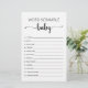 Koop dit spel en geniet van een Word Scramble-baby van hoge kwaliteit voor uw evenement! Genderneutraal zwart-wit ontwerp. ANTWOORDEN: 1 FLES, 2 WIPES, 3 HOOG VOORZITTER, 4-PACIFIER, 5-DIAPER BAG, 6-ASPIRATOR, 7-ONESIES, 8-BABY LOTIE, 9 BOOTIES, 10-BLANKET, 11-BORSTVOEDING, 12-MOTHERHOOD