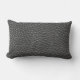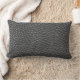 Een koel lumbaal kussen met een close-up foto van versleten zwart (of donkergrijs) kunstleer.