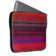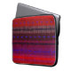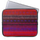 Deze laptophoes is voorzien van een afbeelding met een kleurrijk abstract patroon van geweven horizontale banden. De briljante kleuren rood, paars, blauw en zwart lijken te gloeien. U kunt tekst toevoegen als u dat wenst.