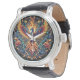 Maak een gedurfde uitspraak met dit opvallende polshorloge met een levendige feniks die oprijst uit vlammen, omringd door ingewikkelde bloemenpatronen. De gedetailleerde illustratie op de wijzerplaat toont rijke tinten sinaasappel, geel en blauw, die vernieuwing en kracht symboliseren. In combinatie met een strakke zwarte lederen band en een zilverkleurige hoesje, combineert dit uurwerk kunstenaarschap met elegantie. Perfect voor degenen die mythische design en unieke accessoires waarderen, dit horloge is een tijdloos stuk dat een vleugje kracht en sophisticatie toevoegt aan elke outfit."