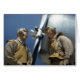 Afbeelding van de tweede wereldoorlog van Amerikaanse mariniers, piloten van luitenants, in de buurt van de propellor van een motorvliegtuig dat gebruikt wordt voor de training van zweefvliegtuigen op het Paginaveld van Parris Island, South Carolina. WWWII-kleurenfoto genomen door fotograaf Alfred T. Palmer in 1942.