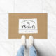 Moderne boerenboerengepersonaliseerde doormat met je familienaam in je staatskaart. Faux burlap canvastextuurachtergrond. Klik op Aanpassen om uw eigen tekst en afbeeldingen toe te voegen en een uniek ontwerp te creëer!
