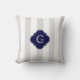 XL Lt Gray White Stripes Navy Quatrefoil Monogram Kussen