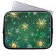 Xmas Golden Snowflakes op groene achtergrond Laptop Sleeve