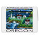 De mooie vuurtoren van Yaquina is een van de meest historische vuurtorens in Oregon. Het afbeelding is afkomstig van een oorspronkelijk schilderij van het International Artist Jennifer Lake.