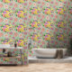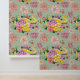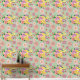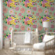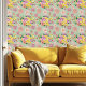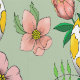 Een Yellow Albino Ball Python komt rond roze en perzik rozen in een achtergrond van blauwgroen.