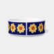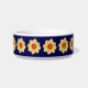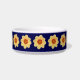 Keramische kom voor voeder voor gezelschapsdieren voor katten of honden die is voorzien van het afbeelding van een gele Dahlia-bloem tegen een blauw marinesolf en die is gedrukt in een repetitief patroon. Een mooi, bloemetjesontwerp! Selecteer de grootte van de kom van uw huisdier.