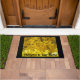 Een foto van de gele Forsythia-bloei staat op deze deurmat.