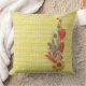 Subtiele liefdeswoorden op een zacht gele grond met een cluster van bloemen maken dit een zoete kussen om een kamer op te helderen.