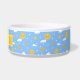 Dien je hond of kat aan met deze schattige gele zon en wolken gepatterde, gepersonaliseerde huisdierenkom! Deze schattige gele zonnezon- en wolkenkrabber-gepersonaliseerde kom voor gezelschapsdieren is leuk en speels met het schattige en getextureerde zonneschijn en wolkenrepetitie. U kunt deze kom van voeder voor gezelschapsdieren aanpassen en uw huisdiernaam toevoegen door op deze sjabloon te klikken. Dit unieke en originele schattige patroon van zonneschijn en wolken dat zich herhaalt, werd met de hand getekend door OhMyStarling! Je huisdier zal graag eten of uit deze schattige blauwe en gele gepatterde voedselkom drink worden.
