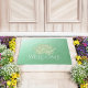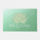 Yoga Studio Meditation Instructor / Life Coach / Healer / Reiki Master / Massage Therapy Welcome Doormat Sjablonen - Modern Elegant Faux Gold Foil Lotus op Green Gold Texture Background