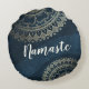 Yoga Fitness Studio / Meditation Instructor / Personal Trainer / Life Coach / Healer / Reiki Master / Massage Therapy Round Pillow. Moderne Chic Faux Gold Foil Floral Mandala Symbols op de achtergrond van het blauw-golfpatroon van de marine.