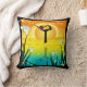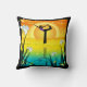 Een meisje dat haar yoga doet voor een felle zonsondergang achter een vijver met witte lelies op de voorgrond, vogels die erboven vliegen. Dit ontwerp is funky en leuk - speels maar verfijnd - de achterkant van het kussen is hetzelfde als de voorkant.