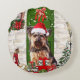 De Yorkie Dog Kerstmis die buiten het decoratieve huis met kerstgeschreeuw zit, is een perfect kerstcadeauidee voor hondenliefhebbers.