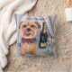 Kussen met schattige Yorkie Terrier die wacht om je te helpen alles te vieren terwijl hij de champagne bracht.