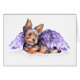 De kleine Yorkshire Terrier die op een wolk rust heeft paarse vedervleugels. Yorkie Angel zal ieder moment van het jaar een glimlach op iemands gezicht brengen!