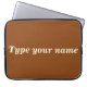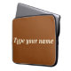Brown laptop sleeve that you can personalize by typing your name. You can also change the font style, font color and the laptop sleeve color in the design tool. Please check the appearance after typing your name. If the appearance is pleasing to you, you can place your order now. If you need to resize or reposition your name, please adjust in the design tool.