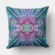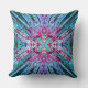 Fun en kleurrijk op art kussen gemaakt van een digitaal afbeelding met fotomanipulatie van het uit yucca gedroogde plant in turquoise, magenta, blauw en groen.
