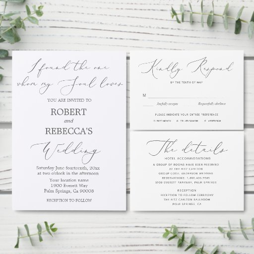 Zacht en Elegant Bruiloft Details Kaart