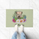 Destei's originele cartoon-illustratie van een schattige Soft-coated Wheaten Terrier hondenkop close-up omringd door kleurrijke zomerwilde bloemen. Er is een blush roze bloem, een paarse bloem, een donkerroze bloem en een witte madeliefje samen met wat groene bladeren en takken. De achtergrondkleur is groen met een licht polka dot patroon. De achtergrondkleur kan worden veranderd in een andere kleur en het polka dot patroon kan worden verwijderd, indien gewenst. Er is ook een personaliseerbaar tekstgebied voor een naam of andere aangepaste tekst.