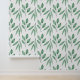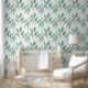 Pastel groene bladeren in een naadloos patroon op een witte achtergrond.