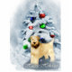 De Wheaten is schattig naast een gevelde kerstboom. Kaarten, siervoorwerpen en kleding. Veel cadeauideeën voor hondenliefhebbers om het cadeau extra speciaal te maken voor vakantie.