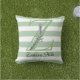 Zachte groene stroken monogram lavendel groen gooi buitenkussen
