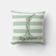 Zachte groene stroken monogram lavendelgroen buitenkussen