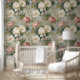 Zachte pastel Victoriaans Vintage Bloempioen groot Behang