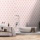 Mooi zeeschelppatroon in horizontale rijen. Elke rij is "offset" of verplaatst tussen de rij hierboven, ook bekend als een bakstenen patroon. Zacht kustontwerp geschikt voor elke kamer, vooral rustgevend voor de kinderkamer van een baby. Dit patroon is verkrijgbaar in grijs, of pastel blush.