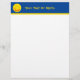 Een groene gele zon die glimlacht op een blauwe achtergrond. Voeg je eigen tekst toe. U kunt de kleur van zowel de tekst als de achtergrond wijzigen.
