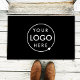 Een eenvoudige, op maat gemaakte zwarte deurmat in een moderne minimalistische stijl die eenvoudig kan worden bijgewerkt met uw bedrijf logo.