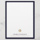Een luxe zakelijke briefhoofd sjabloon in een moderne stijl met een stijlvolle marineblauwe rand die eenvoudig kan worden bijgewerkt met uw bedrijf logo en briefhoofd footer inclusief de naam en tagline van uw bedrijf. De effen blauwe achterkant beschikt over een kleinere logo met ruimte voor uw website adres, telefoon, e-mail of andere informatie, waaronder social media gebruikersnamen. Elk blad straalt professionaliteit en verfijning uit, waardoor het perfect is voor officiële correspondentie, facturen of belangrijke zakelijke documenten.