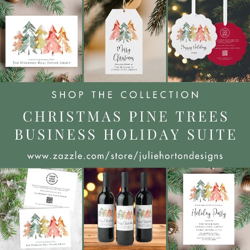 Christmas Pine Trees Watercolor Business HolidayOntworpen door Julie Horton