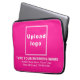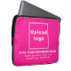 laptophoes die u gebruikt om uw merknaam beter bekend te maken. De inhoud is uw bedrijfsnaam, bedrijfsnaam of bedrijfsnaam, adres en telefoonnummer. Het ontwerp is witte teksten op roze achtergrond. Controleer het uiterlijk na het uploaden van logo en het typen van tekst. Als het uiterlijk u tevreden stelt, kunt u uw bestelling nu plaatsen. Als u de grootte van de logo en tekst moet aanpassen en verplaatsen zodat deze op deze laptophoes of op een andere maat passen die u kiest, moet u het gereedschap voor het ontwerp wijzigen. U kunt andere veranderingen volgens uw voorkeur in het ontwerphulpmiddel ook aanbrengen zoals het veranderen van de achtergrondkleur, de doopvontkleur en de doopvontstijl. Sleeve om uw laptop te beschermen en deze gemakkelijk mee te nemen terwijl u uw bedrijf adverteren of uw merknaam aan uw klanten of klanten bekendmaakt.