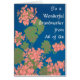 Een en veelzijdig wenskaart voor een grootmoeder, met zalmroze geraniums op een diepblauwe achtergrond en witte belettering, U kunt deze kaart naar uw grootmoeder sturen voor Moederdag of grootouderdag, of voor haar verjaardag, of zelfs als een 'Get Well'-kaart. Vanuit een schermgedrukt ontwerp van Judy Adamson kunt u de inside message naar wens personaliseren.