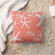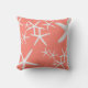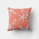 Groot, vierkant kussen met slanke witte zeester in tropische, zalmroze / koraalroze kleur aan beide zijden. Het zeedecor, natuurthema is perfect voor elke strandhuis, zeekantwoning of om een zomerse sfeer in je huis toe te voegen.