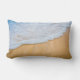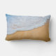 Kussen met een foto van een goudbruin zandstrand met wit schuimig surf.