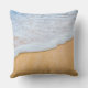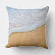 Kussen met een foto van een goudbruin zandstrand met wit schuimig surf.